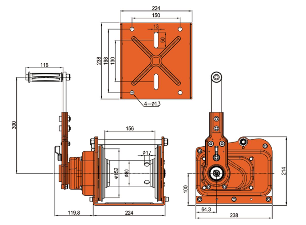 - Ratchet handle permits reciprocating handle movement in both directions for lifting and lowering loads